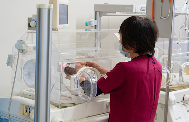 お産は、新しい家族が増える素敵なでき事ではありますが、同時に急な医療対応が必要になるというリスクも多くはらんでおります。総合病院だからできる体制で、妊婦さんが安心して出産できる安全な環境を整えております。